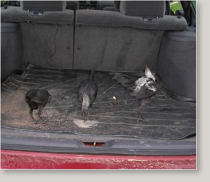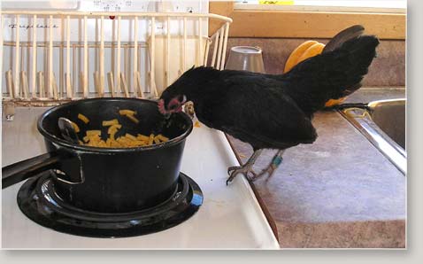 literally. Instead of waiting for the feed to be passed out like the rest of the chickens, they jump in the feed bin as soon as it's opened!